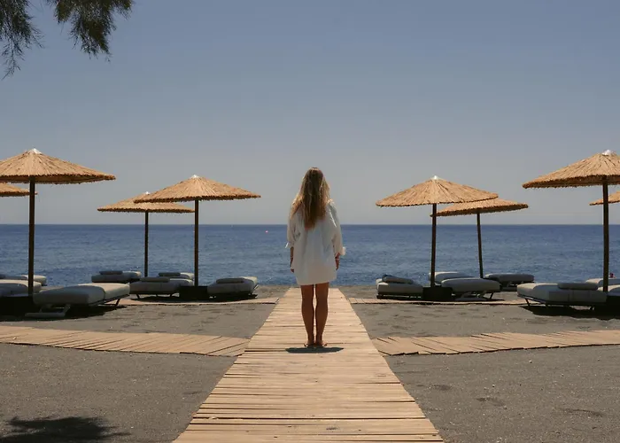 The stylish 3-star Black Rose Beach Suites Perissa hotel is about 5 minutes on foot from the Waterpark Santorini and features limousine and car rentals for guests' convenience. Positioned 4.5 km from the village of Megalochori, this Perissa hotel provides a banquet hall, making it perfect for gatherings.